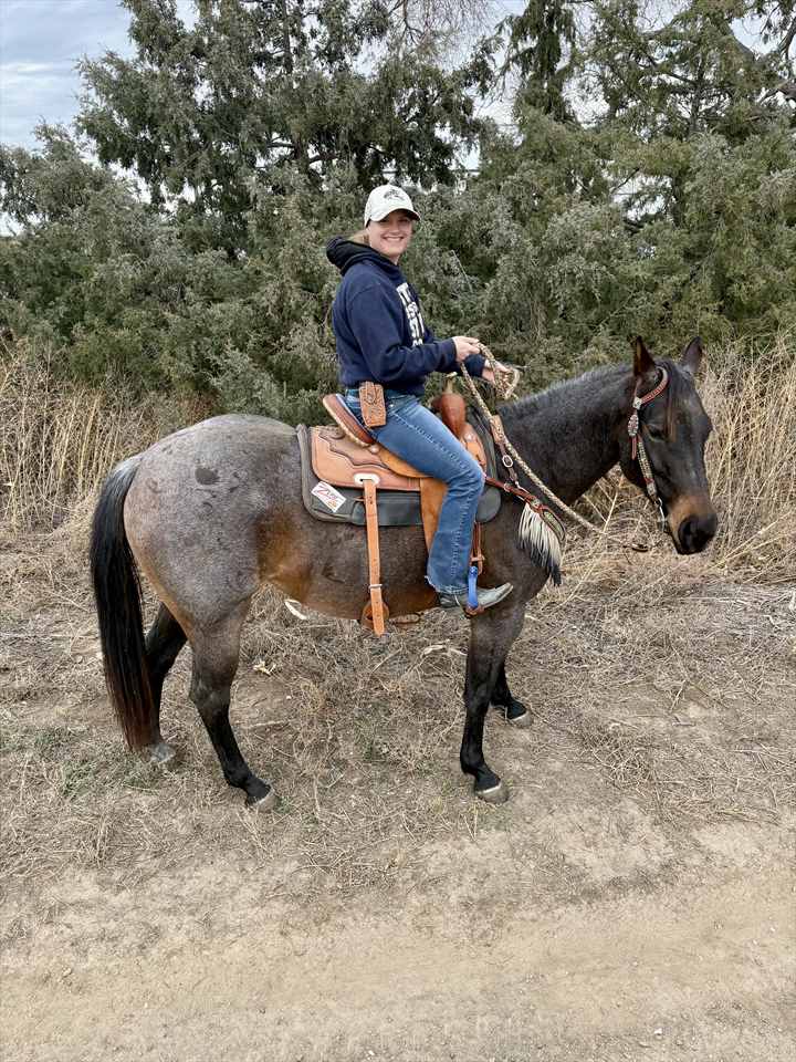 I started riding when I was 3. I was in 4-H since I was 8. I got my level three horsemanship certification in 4-H. I was the all around senior champion at our open and 4-H shows my senior year. I barrel race and jump. I also trail ride.